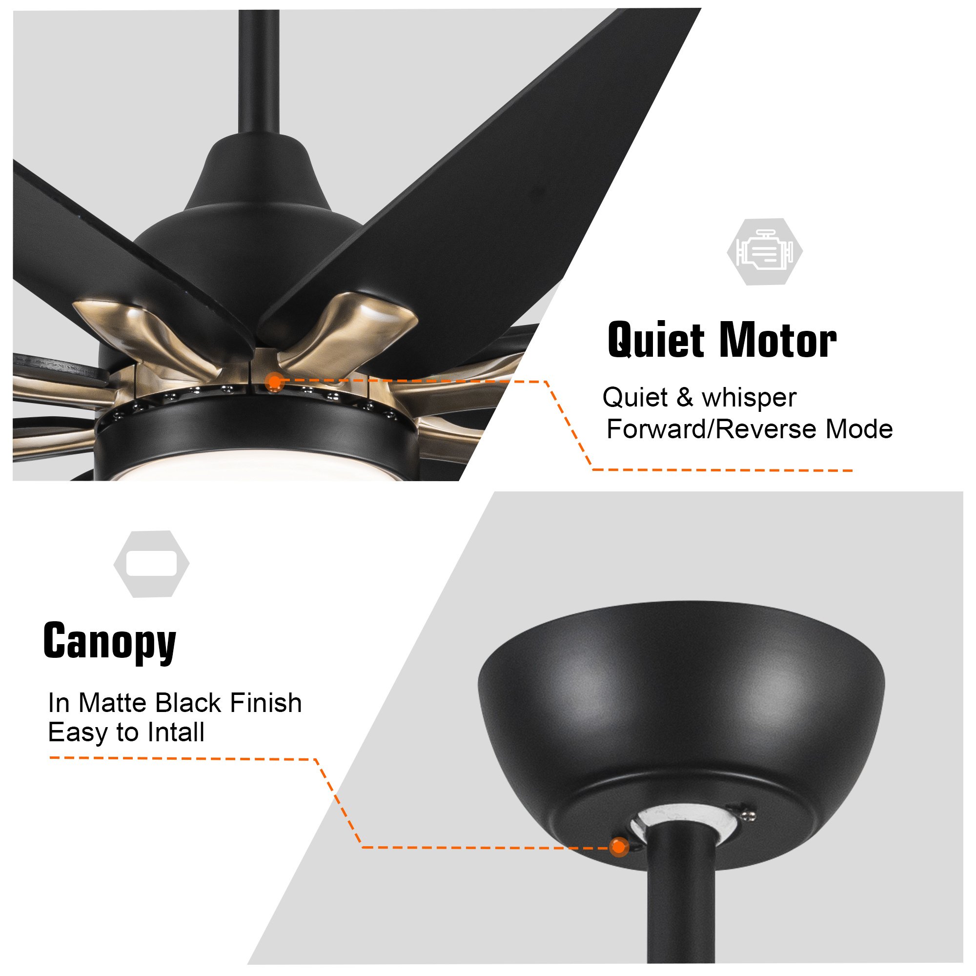 This is a antique black gold ceiling fan with a very light sense of luxury, which is the best choice for large spaces. First of all, the use of high-quality materials, its blades are made of wood, black with gold lines, showing a high-level and beautiful look. Secondly, the 72-inch blade span can accelerate the air flow faster, especially suitable for installation in the living room or dining room.Finally, its function is practical, using a high-quality motor to provide strong air movement and quiet performance, it is worth using with confidence.Specifications:RPM:110Lumens: 2470Blade material: WoodMaximum Airflow:8300LED lampshade material: acrylic