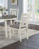 Enjoy your favorite cuisine with the decor of modern farmhouse. The round table with a gray wood tabletop framed in white features seating for up to four. The set also includes four chairs upholstered with gray seat cushions and trimmed in white clean lines.