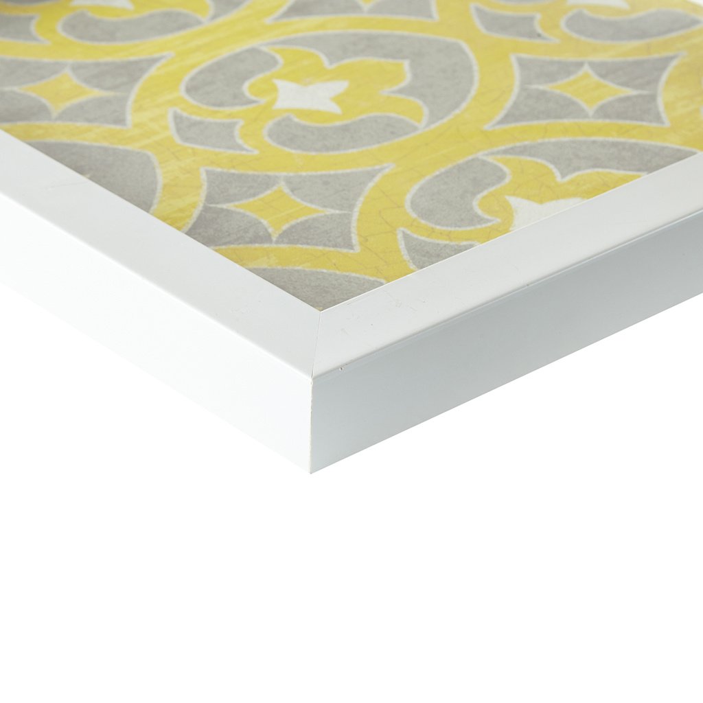 DESCRIPTIONAdd the perfect pop of color with the Madison Park Patterned Tiles Distressed Yellow Medallion 3-piece Wall Decor Set by Artist Z Studio. This three piece set features a global inspired pattern in dynamic shades of vibrant yellow, crisp white, and cool grey creating beautiful Moroccan like tiles. Each piece of art is printed on paper and gel coated for texture and a light gloss, then finished off with a white frame for a shadowbox effect. Featuring a Sawtooth on the reverse of each piece for easy hanging; easily assemble the pieces together horizontally or vertically to fit any space or hang pieces separately for a more stylized approach. Spot clean only with each piece measuring 13.75x13.75", this set is perfect to add subtle color to any entry way, kitchen space, or bathroom.PRODUCT DETAILSSee below3 Pieces: 13.75"W x 13.75"H x 1.25"D (3)Image Spec: 12"W x 12"HMATERIALPolystyrene: 40%MDF: 30%Paper: 20%Gel coat: 10%