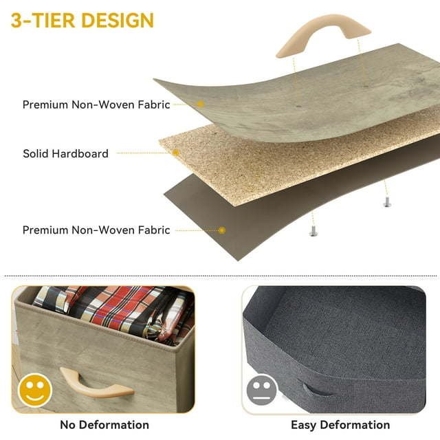 UNIVERSALLY COMPLEMENTARY- Premium charcoal fabric drawers with sturdy white metal frame and wooden tabletop; Enjoy modern scent and stylish aesthetics that easily complements various living spaces: living rooms, bedrooms, hallways, entryways, closets and nurseries, etc