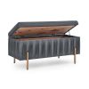 Elegant Upholstered Velvet Storage Bench with Cedar Wood Veneer, Large Storage Ottoman with Electroplate Iron Legs for Hallway Living Room Bedroom