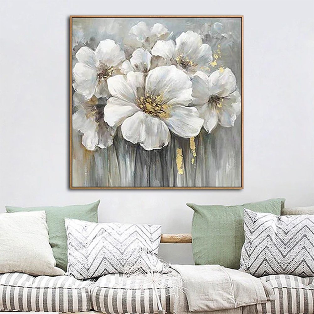 Home > Hand Painted Oil Paintings Hand Painted Square Floral / Botanical Pop Art Living Room Hallway Bedroom Luxurious Decorative Painting