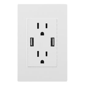 USB Wall Outlet Dual 2.4A USB Wall Charger High Speed Duplex Wall Socket US Standard (Color: White)