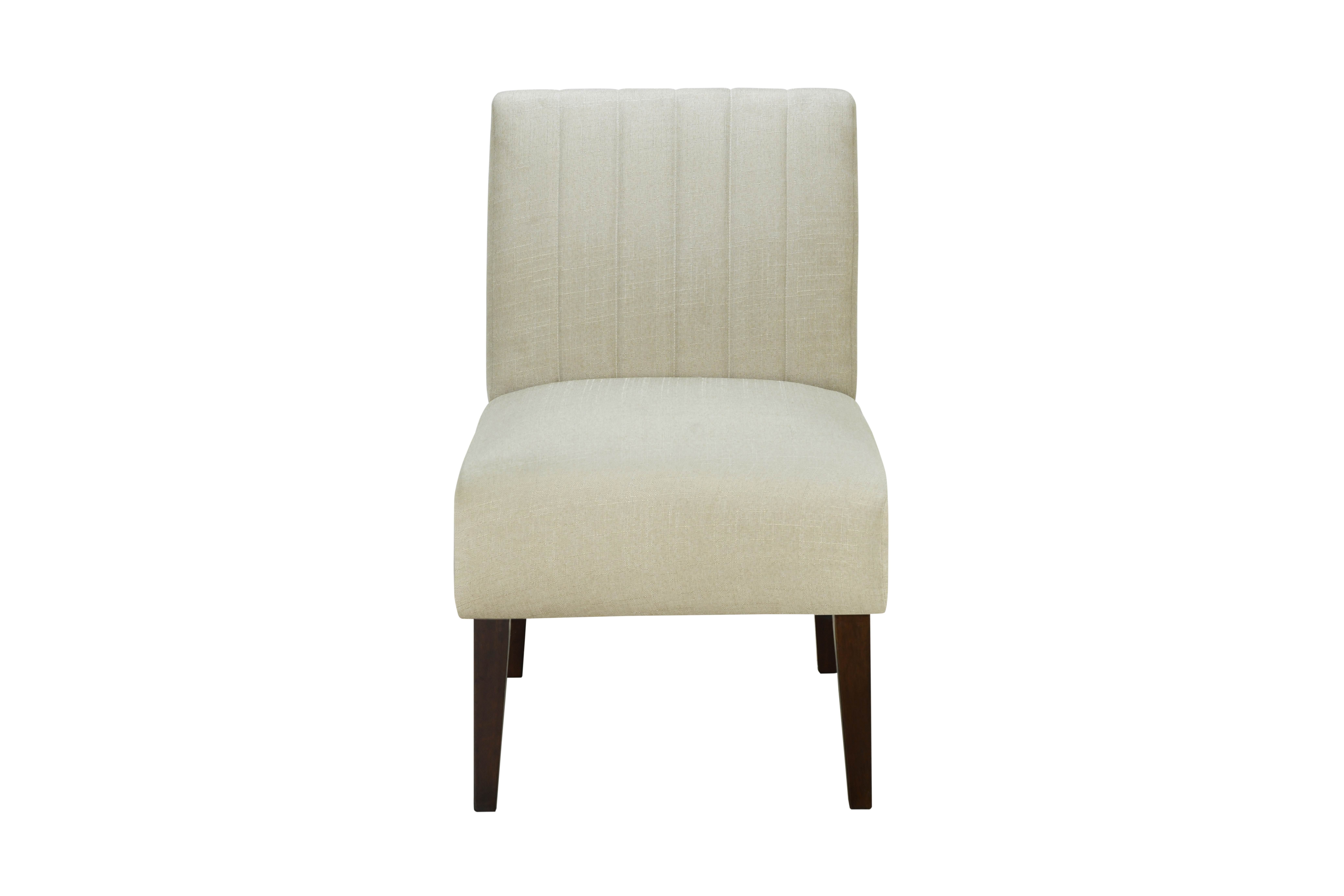 Description & DimensionsElevate your interior with our exquisite armless accent chair, a harmonious fusion of style and comfort. Its clean lines and minimalist design effortlessly blend into any decor, while the wooden legs add a touch of natural elegance. The absence of arms opens up the space and promotes a free-flowing atmosphere, making it a versatile seating option for both cozy corners and expansive living areas. With its plush cushioning and supportive backrest, this chair beckons you to unwind and relax. Whether used as a standalone statement piece or part of a larger ensemble, our armless accent chair is sure to enhance your living space with its timeless charm and comfort.