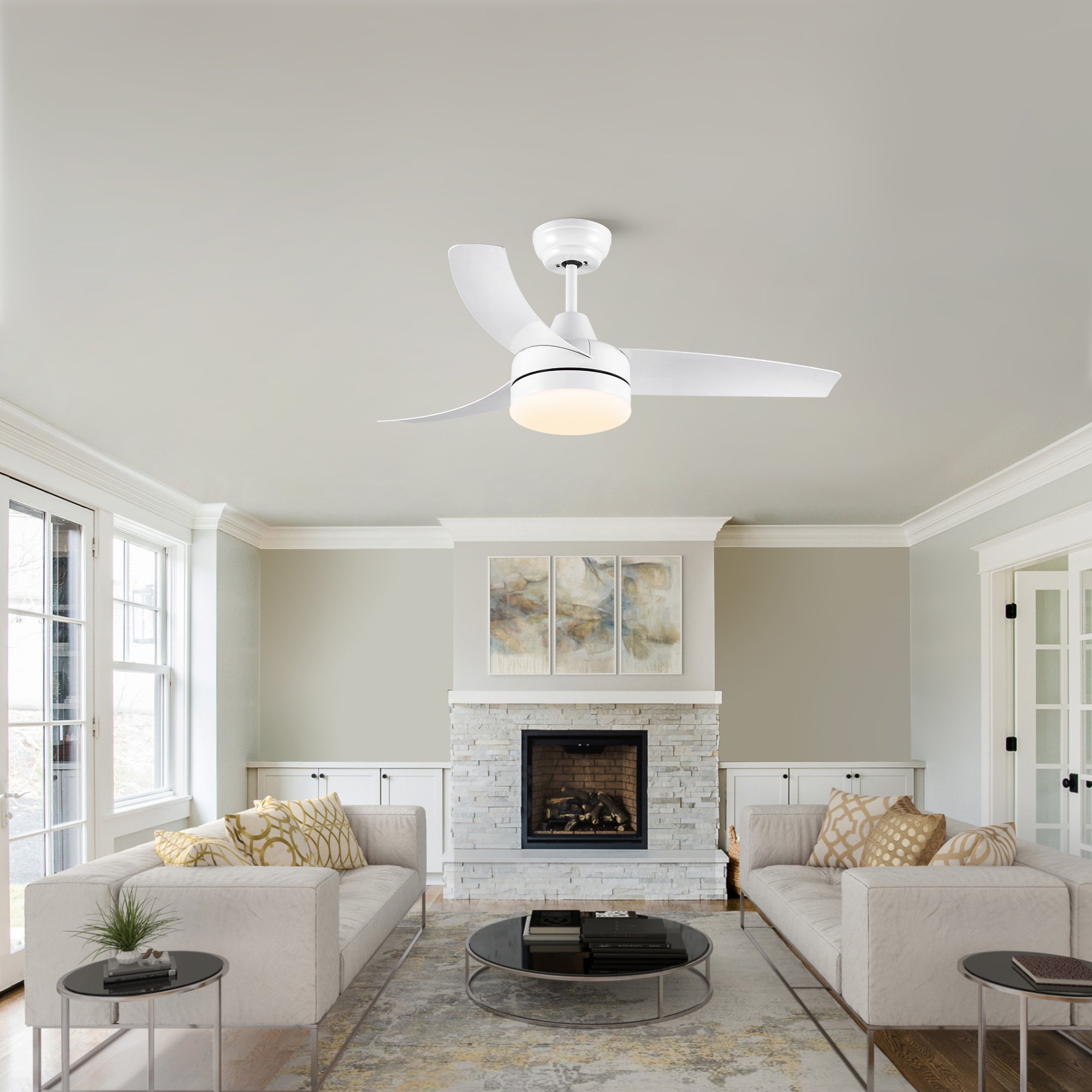 YUHAO Modern Matte White 42in. Integrated LED Propeller Ceiling Fan Lighting